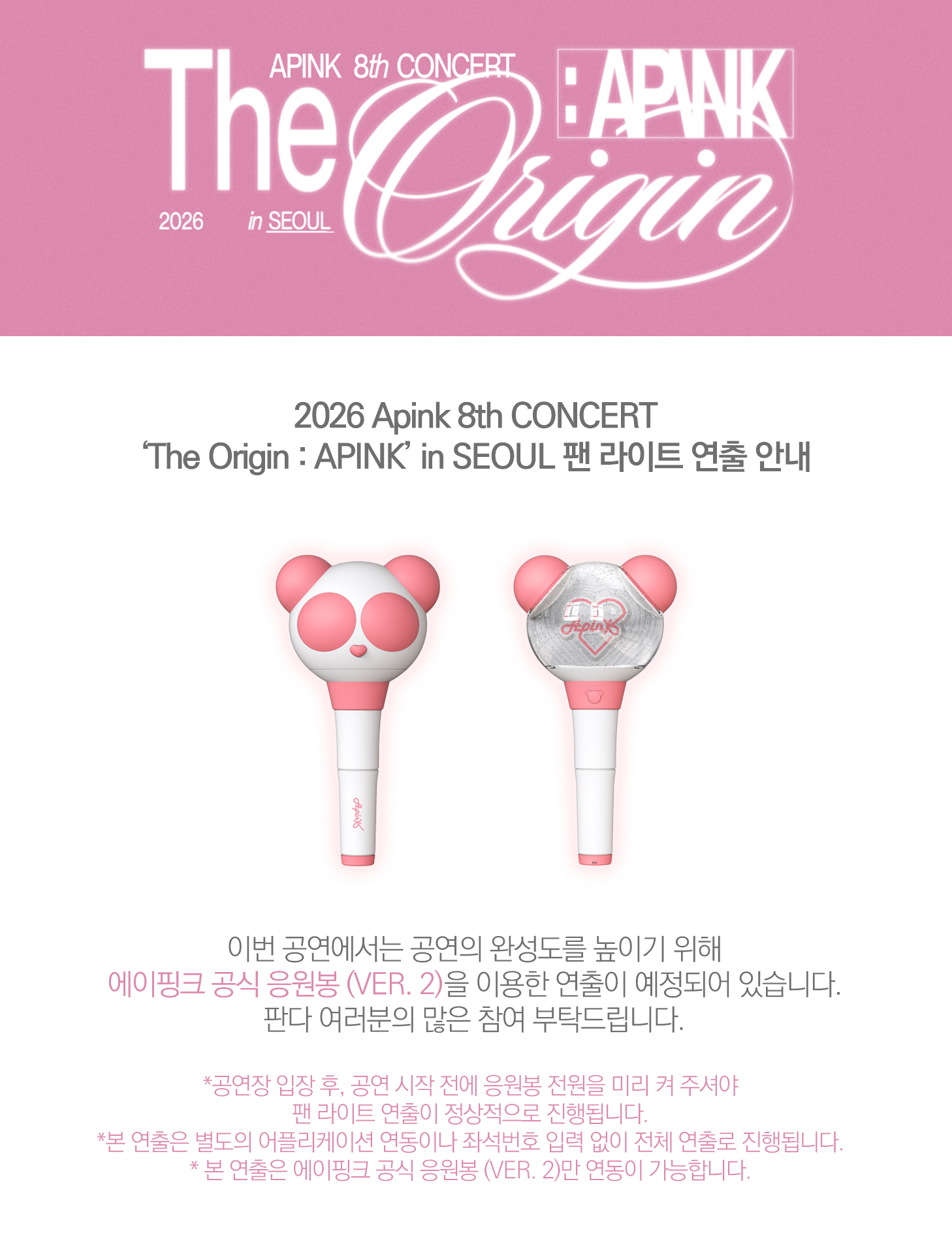 2026 Apink 8th CONCERT ‘The Origin : APINK’ in SEOUL 팬 라이트 연출 안내